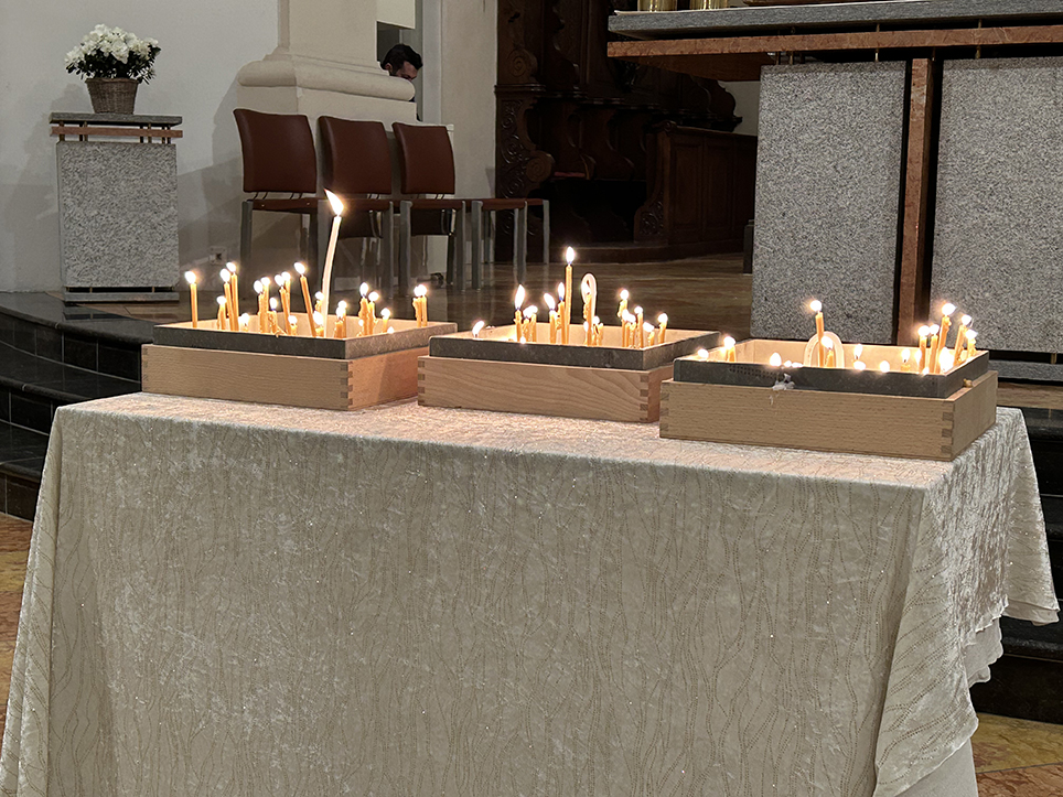 Flüchtlinge aus Eschenbach und Ballwil und auch anderswo folgten der Einladung. Es waren aber auch ebenso viele einheimische Menschen aus dem Pastoralraum anwesend und zeigten so ihre Solidarität mit den Geflüchteten und drückten ihren Wunsch nach Frieden aus. Die gelesenen Texte waren in Ukrainisch und Deutsch mit einer schriftlichen Übersetzung in die jeweils andere Sprache. Eindrückliche Dankbarkeit wie auch mitfühlende Gedanken prägten das Gebet. Musikalisch umrahmte das Ehepaar Huwyler an der Orgel und Geige die schön gewählten Texte. Spontan formulierte Fürbitten gaben dem Zusammensein einen sehr persönlichen Augenblick und die vielen Kerzen am Ende bekunden Solidarität mit allen die unter Krieg, Not und Elend zu leiden haben. Am Ende der Feier, bei einem kleinen Umtrunk war die Dankbarkeit spürbar. Allen für ihr Tun ein herzliches Dankeschön.