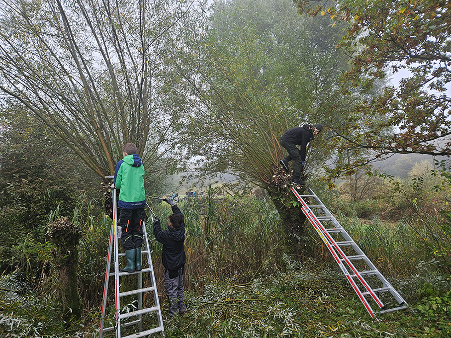 Der Auftrag war klar: Werkzeuge fassen und starten. Teams wurden gebildet, miteinander kommuniziert, geklettert und geschnitten. Anfangs etwas vorsichtig, dann aber nach den ersten Schnitterfolgen ging es so richtig los. 13 Kopfweiden sowie zwei Haselsträucher haben die Jugendlichen letztendlich bearbeitet. Nach strenger und doch energieladender Arbeit konnten die Jugendlichen ein feines Zmittag im Brioche geniessen.