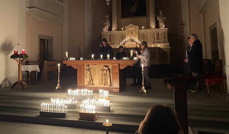 Dies war die Botschaft vom diesjährigen Rorate-Gottesdienst. Ausgedrückt wurde dies mit einer Prozession, in der jeder Mitfeiernde eine Kerze anzünden durfte, welche dann vor dem Altar eingesteckt wurde.