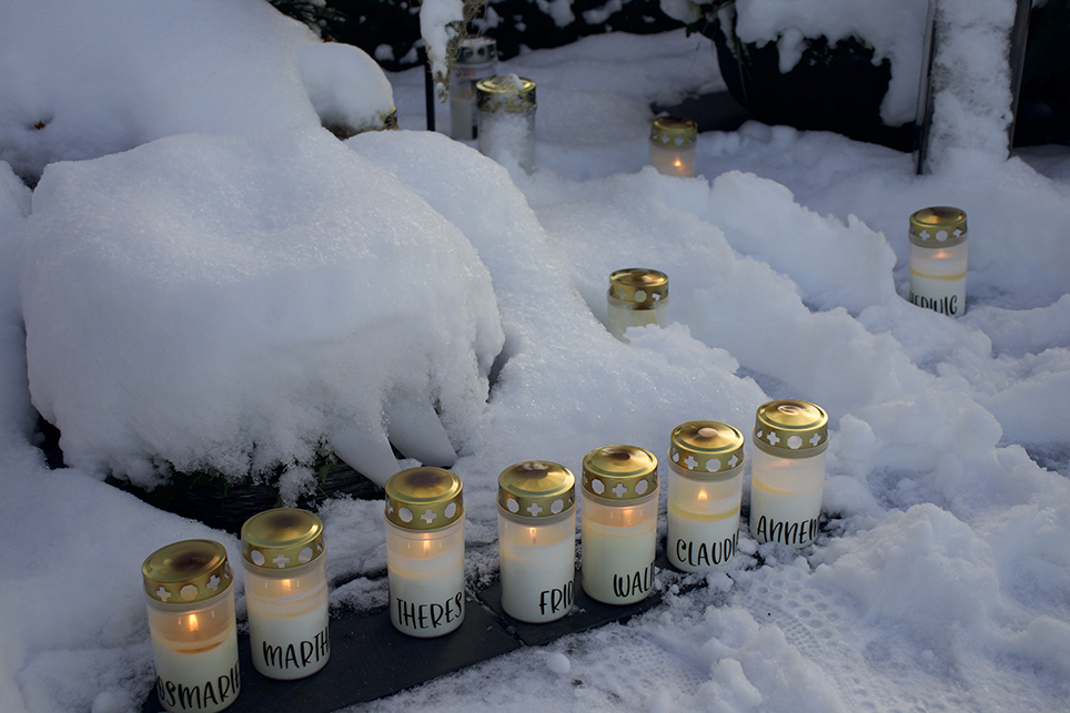 Für alle im letzten Jahr Verstorbenen wurde eine Kerze angezündet und nach dem Gottesdienst gemeinsam auf das jeweilige Grab getragen. Ein herzliches Dankeschön gebührt Stefan Küttel für den würdevollen Gottesdienst und der Flötengruppe für die musikalische Umrahmung. Der anschliessenden Kaffee in der Schloss-Stube wärmte alle Besucher höchst willkommen wieder auf.