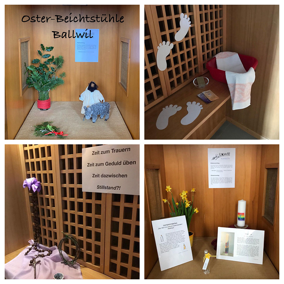 Die Beichtstühle in Ballwil thematisieren aus aktuellem Anlass die wichtigsten Stationen der Passionsgeschichte von Palmsonntag bis Ostern.