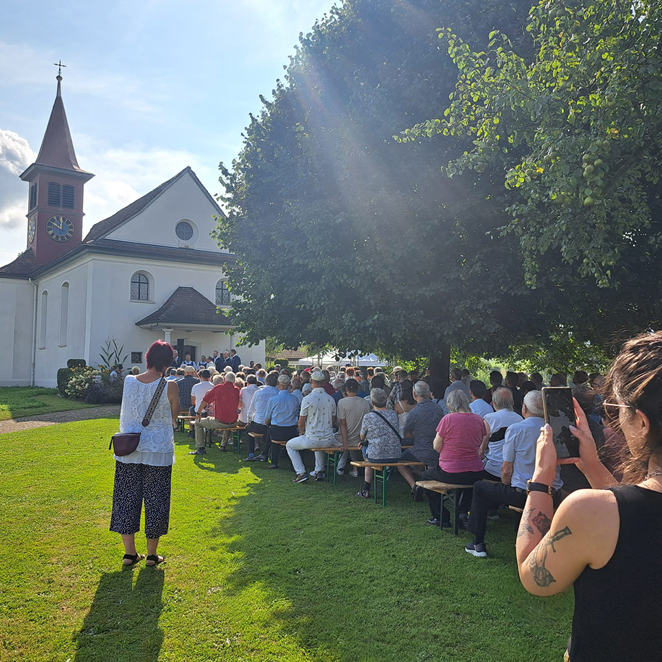 Bei strahlendem Sonnenschein und angenehmen Sommertemperaturen genossen 150 Gottesdienstbesuchende eine wundervolle Feier vor der Kapelle Gibelflüh.