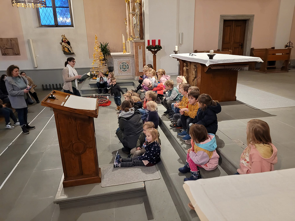 Am Mittwoch, 4. Dezember fand in der Pfarrkirche in Ballwil die Adventschinderfiir statt. Die Kinder machten es sich mit einem weichen Kissen auf dem Boden bequem.