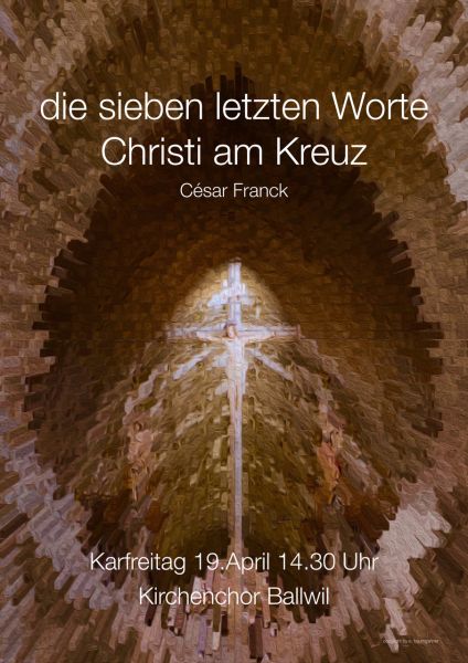 César Francks eindringliche und zugleich meditative Passionsmusik, vor 160 Jahren komponiert, berührt auch Menschen von heute. Es ist eine einfühlsame musikalische Betrachtung des Geschehens auf Golgotha anhand der Jesus-Worte und biblischer Begleittexte. Chorsätze von inniger Schlichtheit stehen dramatischen Aufschwüngen gegenüber. Das Werk blieb lange Zeit verschollen. 1977 erklang die Passionsmusik in einer Kirche in Deutschland vermutlich zum ersten Mal. Nochmals ein paar Jahre später führte der Kirchenchor Ballwil die «Sieben Worte Christi am Kreuz» erstmals im Rahmen der Karfreitagsliturgie auf. Die Komposition zählte zu den Lieblingswerken unseres kürzlich verstorbenen langjährigen Chorleiters Josef Estermann, der es 2009 letztmals dirigierte, damals in der Orchesterfassung.