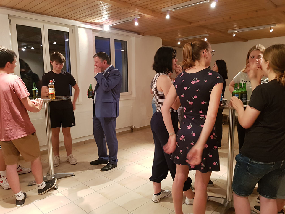 An den Stehtischen und bei lockerer Atmosphäre wurde dann gerne etwas getrunken und vom Buffet gekostet. Damit liessen wir das gemütliche Beisammensein ausklingen und freuen uns auf den weiteren Weg mit den Firmlingen.