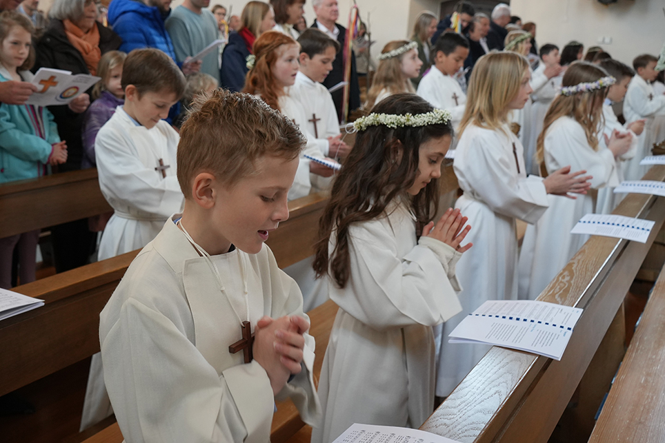 Als die Erstkommunikanten von Priester Christoph Sterkman zum ersten Mal das heilige Brot bekamen, sah man an den strahlenden Augen, dass die Kinder mit ganzem Herzen, die Freude und die Liebe unseres Glaubens in sich tragen und Jesus ganz nahe sind.
