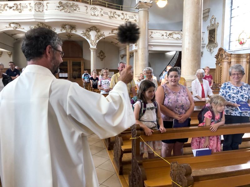 Der erste Schulstart-Gottesdienst in Eschenbach hatte «SEGEN» zum Thema. Was «SEGEN» bedeuten kann, erklärten einige Kinder: «S» für Salbung erinnert uns an die Taufe, «E» für Engel, der uns auf unseren Wegen begleitet und beschützt, «G» für Gott, der uns im Segen nahe ist, «E» für Einigkeit mit Gott im Segen und «N» für Neuanfang, den wir mit der Kraft des Segens wagen dürfen. Am Ende des Familiengottesdienstes wurden Schultaschen und Chindsgi-Täschli, sowie Velos und Trottis gesegnet. Mit der Kraft des Segens gehen wir – Schüler/innen aber auch Eltern, Lehrer Grosseltern und alle begleitenden Personen – den Schritt in den neuen Lebensabschnitt.