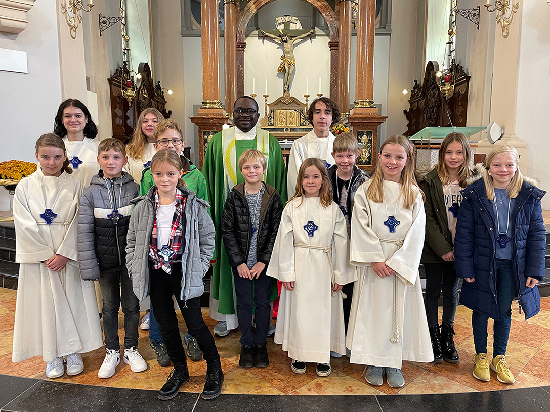 Im Gottesdienst vom 14. November durfte Priester Polycarp Nworie 11 neue Ministrantinnen und Ministranten begrüssen.