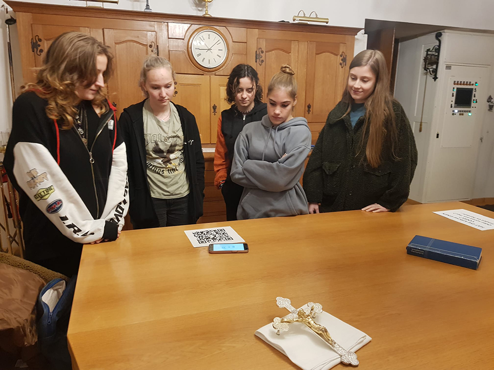 Es war spannend, mit den Jugendlichen Themen zu besprechen, die sehr wohl einen Platz haben in ihrem Leben, aber kein Alltagthema ist für sie. Sie definieren Glauben auf ihre ganz eigene Art und verbinden ihn nicht unbedingt mit der Kirche. Gefordert hat sie natürlich die Diskussion mit Polycarp über das Glaubensbekenntnis. Offen durften sie ihre Meinung sagen und so entstanden spannende Gespräche. Das fröhliche Lachen, das dabei entstand, erhellte den ganzen Kirchenraum. In der Sakristei kamen sie etwas ins Grübeln über den Glauben und durften da und dort in einen Schrank schauen.
