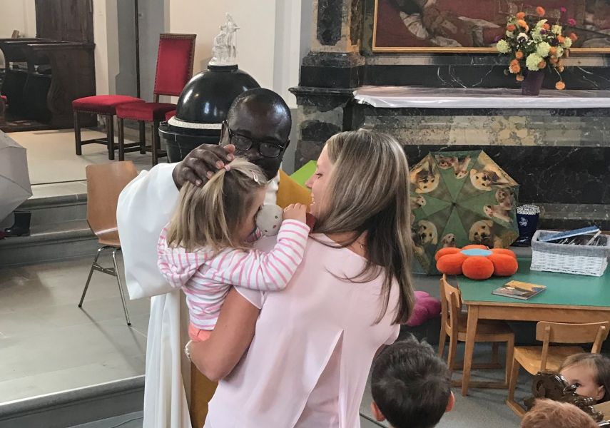 Als dieses Jahr die Kinder mit ihren Begleiter/innen die Kirche betraten, wurden sie von vielen bunten Schirmen empfangen, welche beim Altar aufgestellt waren. Eine frohe Kinderschar von ca. 30 Kindern sangen, beteten und feierten an dieser Feier mit. Nach einer Erzählung, von einem Schirm der nicht nur bei Regen schützt und der Bibelgeschichte: Jesus segnet die Kinder, durften sich alle Kinder von unserem Priester Polycarp Nworie segnen lassen.