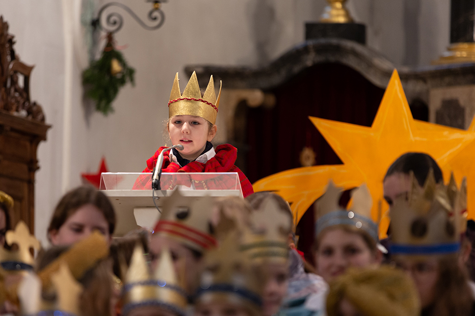 Dieses Jahr haben die Sternsinger drei neue Lieder einstudiert. «En alte Stern» und «This little light of mine» passten wunderbar in den festlichen Gottesdienst. Das Christuslob wurde mit dem Singruf «Halleluja» würdig umrahmt. Natürlich durfte das Lied «Zäme om d’Wält» auch dieses Jahr nicht fehlen. Der sehr gut besuchte Gottesdienst wurde - nicht zuletzt auch wegen den berührenden Gesängen - mehrmals mit Applaus überschüttet. Insgesamt 11 Gruppen zogen von Haus zu Haus durch die verschiedenen Quartiere. Sie wurden wiederum sehr herzlich empfangen und teilweise sogar mit Süssigkeiten beschenkt. Nach dem Mittagessen begleitete die scheidende musikalische Leiterin Petra Sidler zwei Gruppen ins Wohnhaus «Sonne», wo sie bereits sehnlichst erwartet wurden. Die Seniorinnen und Senioren hatten sich im gemütlichen Gemeinschaftsraum versammelt und freuten sich über den Besuch der Sternsinger.